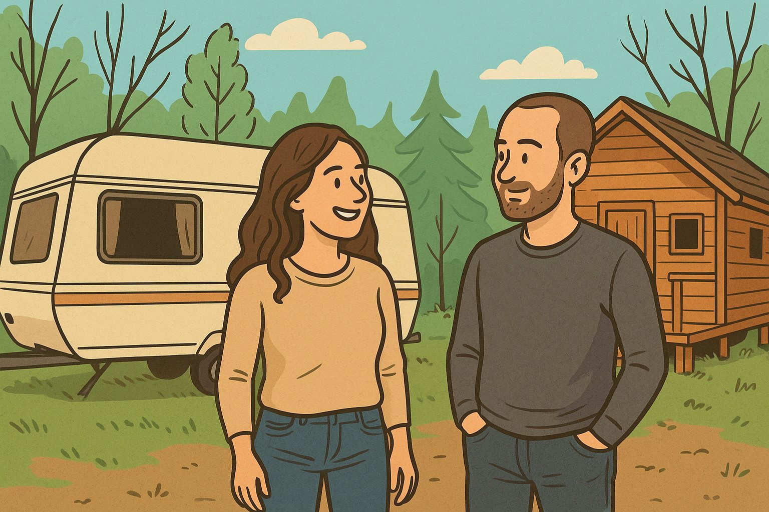 لم يبدأ الأمر ببناء منزل الأحلام مباشرة، بل كانت البداية حقيقية وصادمة: العيش في كرفان صغير، حتى يتمنكا من تحقيق حلمهما.
